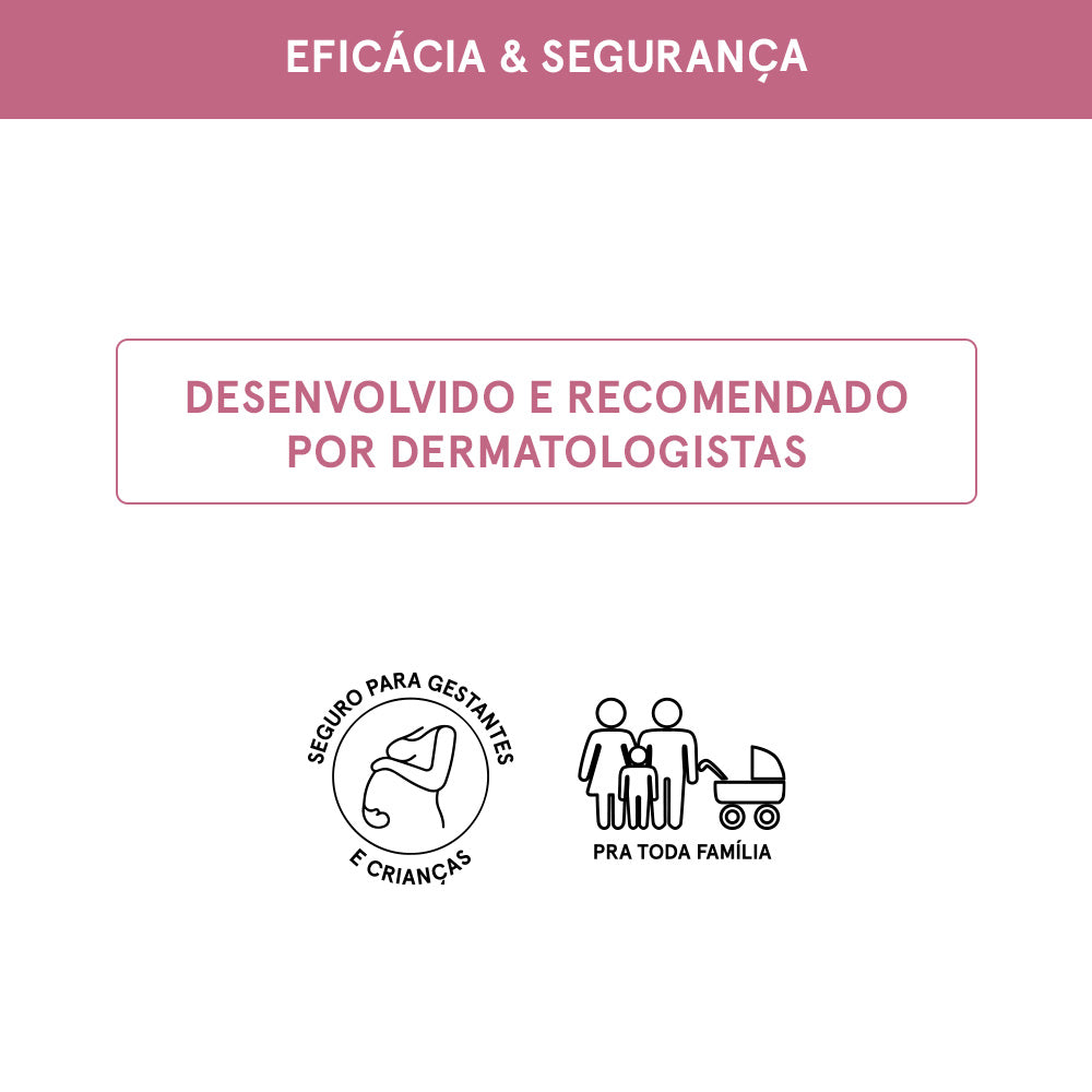 Fórmula hipoalergênica e eco-friendly: vegana, 100% livre de sulfatos, fragrância ou corantes, desenvolvida para minimizar o risco de sensibilização. Sistema conservante biomimético de alta tolerância dermatológica. Biodegradável. Embalagem reciclável.